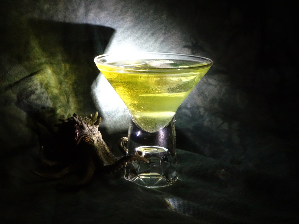 Same basic idea as with Court above: all sorts of aromas twirling around, like the tentacles of the octopus… I wanted to make slightly milder cocktail than Court (alcohol-wise, that is) and I thought the bitter taste of energy drink would fill the “one more strong taste”-niche.