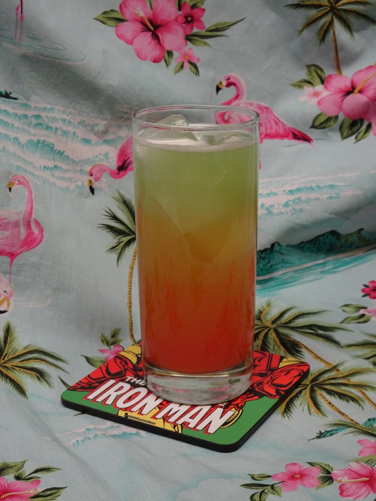 Red and green, of course, are tribute to Spider’s glasses… and this drink also contains optical illusion: it has two distinctive layers, but if you gaze it from above…