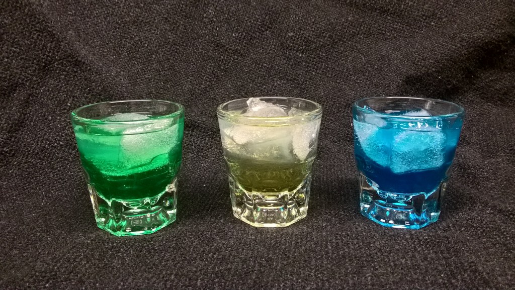 Test Subject K. has been a pest about this, and finally I decided to do it. Lantern Corps: Willpower, Fear, Hope, Life, Death, Rage, Avarice, Compassion and Love… and same approach as in Thanos: Infinity Gauntlet consists of six drinks, Lanterns includes nine drinks! 🙂